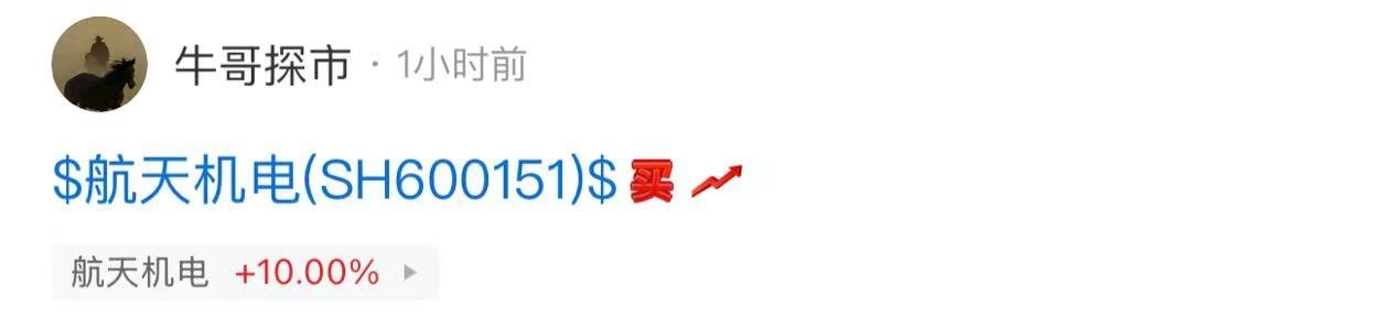 $航天机电(SH600151)$ 惊喜已给到你们!机会永远给到相信我的股友,这段时间天涨停板拿到手软,,像我这样的博主的宠粉你打着灯笼都找不到了