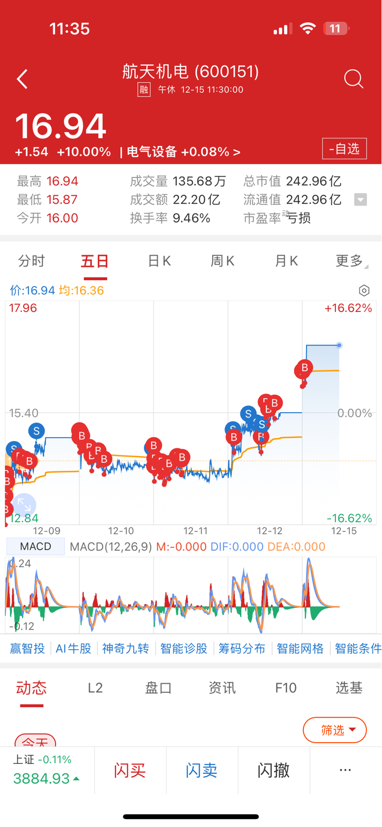 $航天机电(SH600151)$ 坚定持有,给多少钱都不卖,成本十二块。