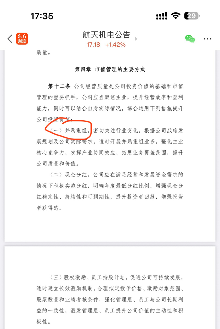 $航天机电(SH600151)$ 市值管理-并购重组排第一个
