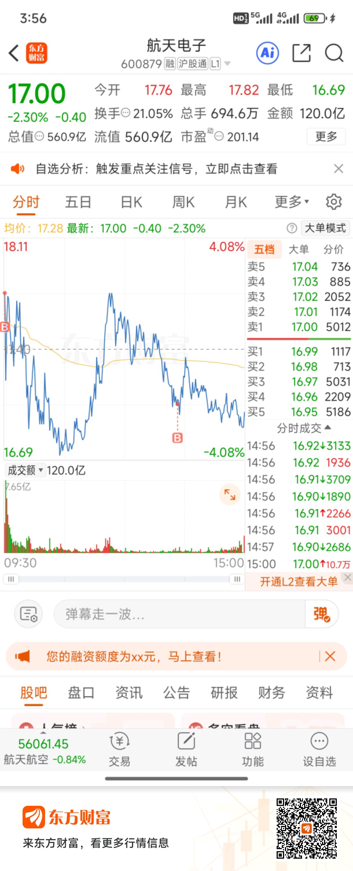 $航天机电(SH600151)$ 本来昨晚想着今天机电要止损,毕竟章的筹码大部分派给了散户跟拉萨,没想到早上有惊喜新主力进来!所以今天格局一下,明天再观察下,航天电子太着急昨晚挂单早上来不及撤回,但我坚信群总不会赚一俩个点跑路,电子拿好,大概率倒T!也受外部环境的影响,继续格局到周五!今天教训领教了,还是不要追高,不着急,有耐心,即使赚不到钱或者少赚,也不能亏本!
