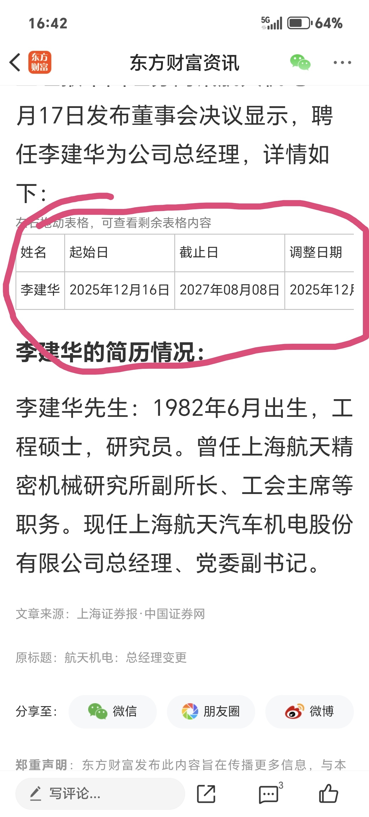 $航天机电(SH600151)$ 兄弟们上面看这总经理就一年的任期啊,作用不大吧……