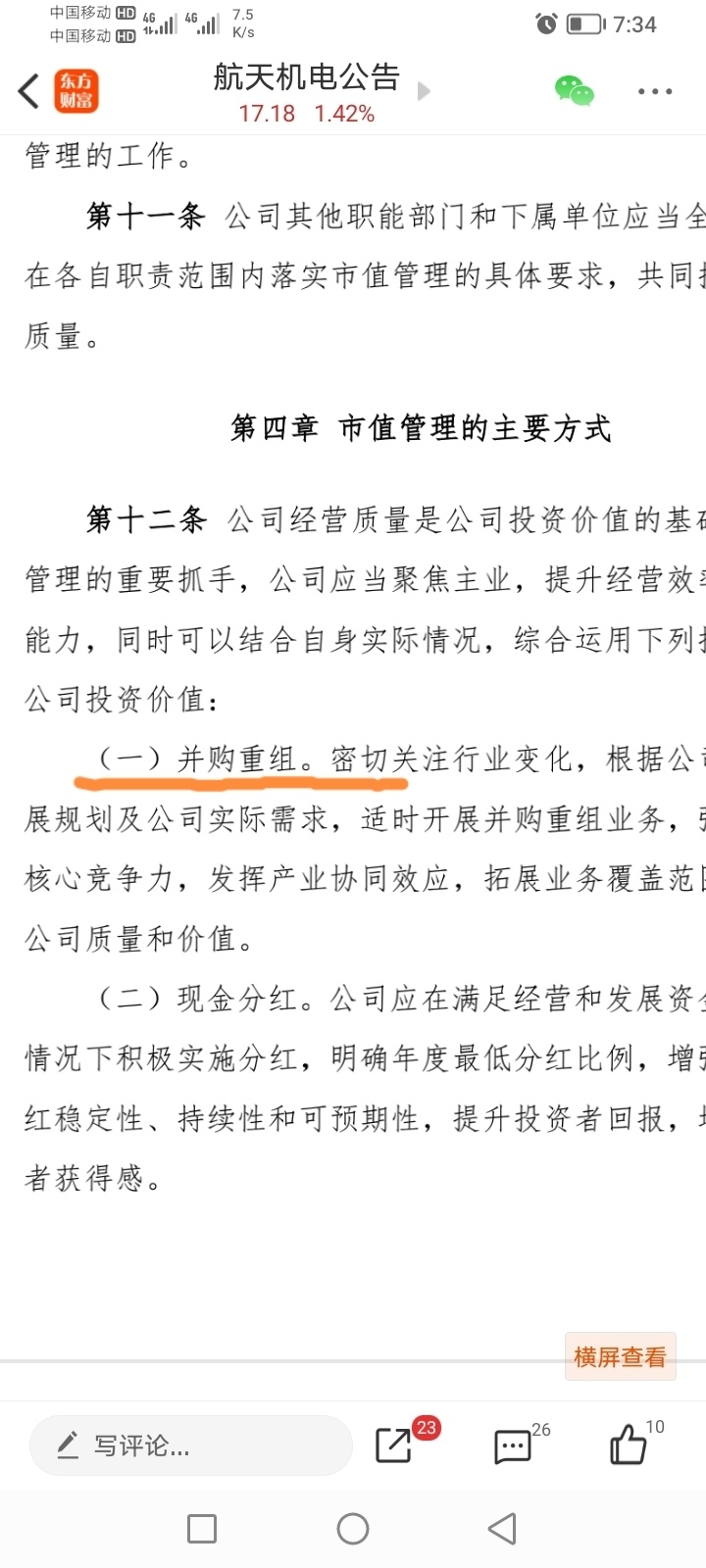 $航天机电(SH600151)$ 公司的市值管理公告:并购重组,提在第一位。。。。