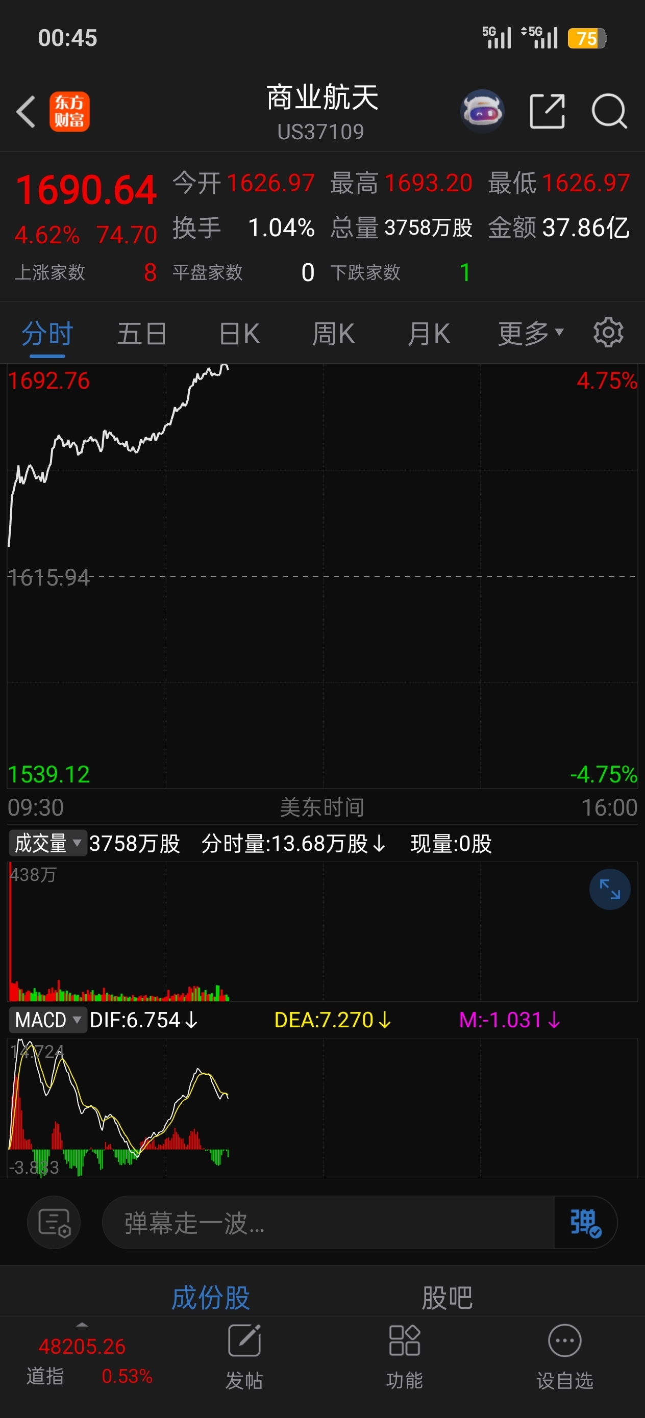 $航天机电(SH600151)$ 你告诉我周一,让我怎么输。