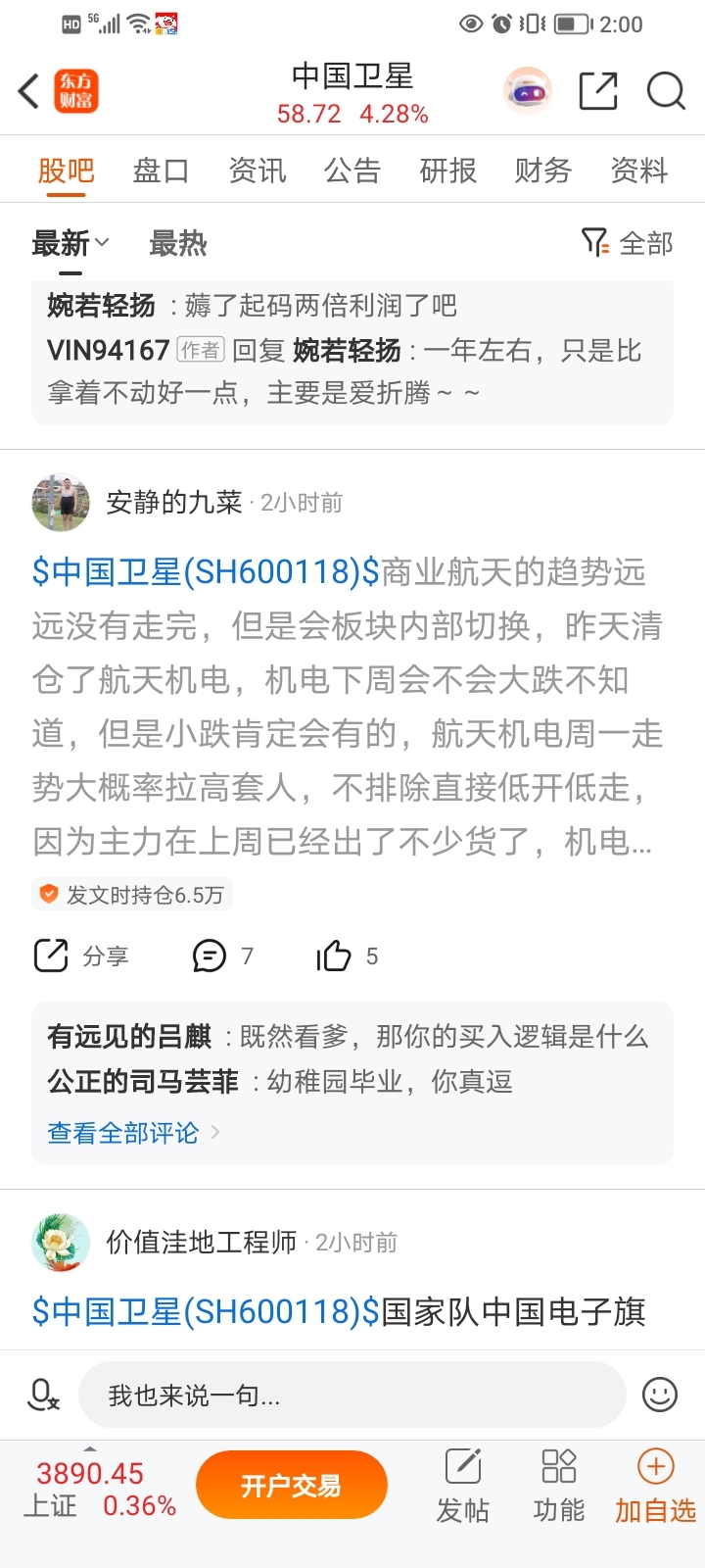 这个出生周五清空了机电去了卫星,在卫星里面唱空机电,被卫星的散户骂惨了,在机电里