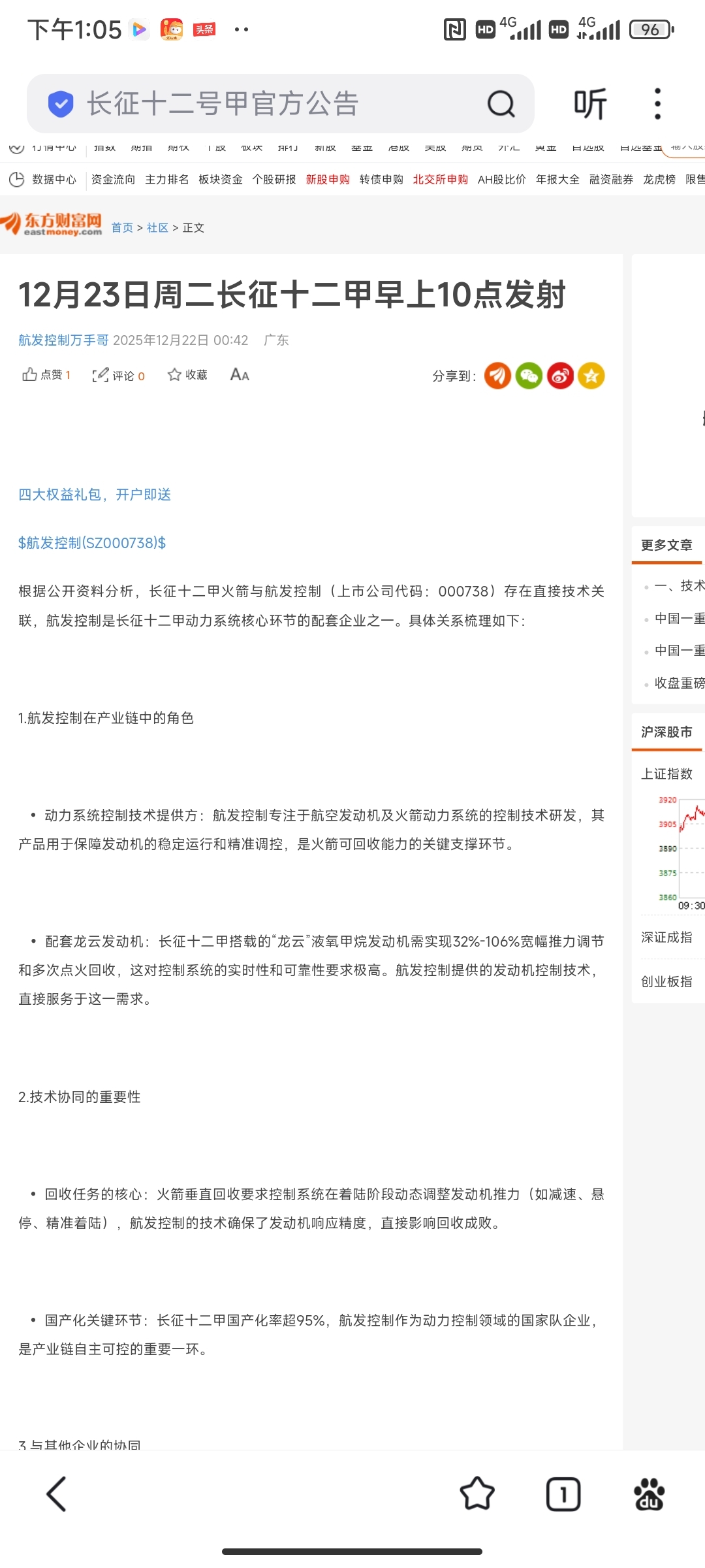 $航天机电(SH600151)$ 长征十二甲12月23日上午发射,东方财富网