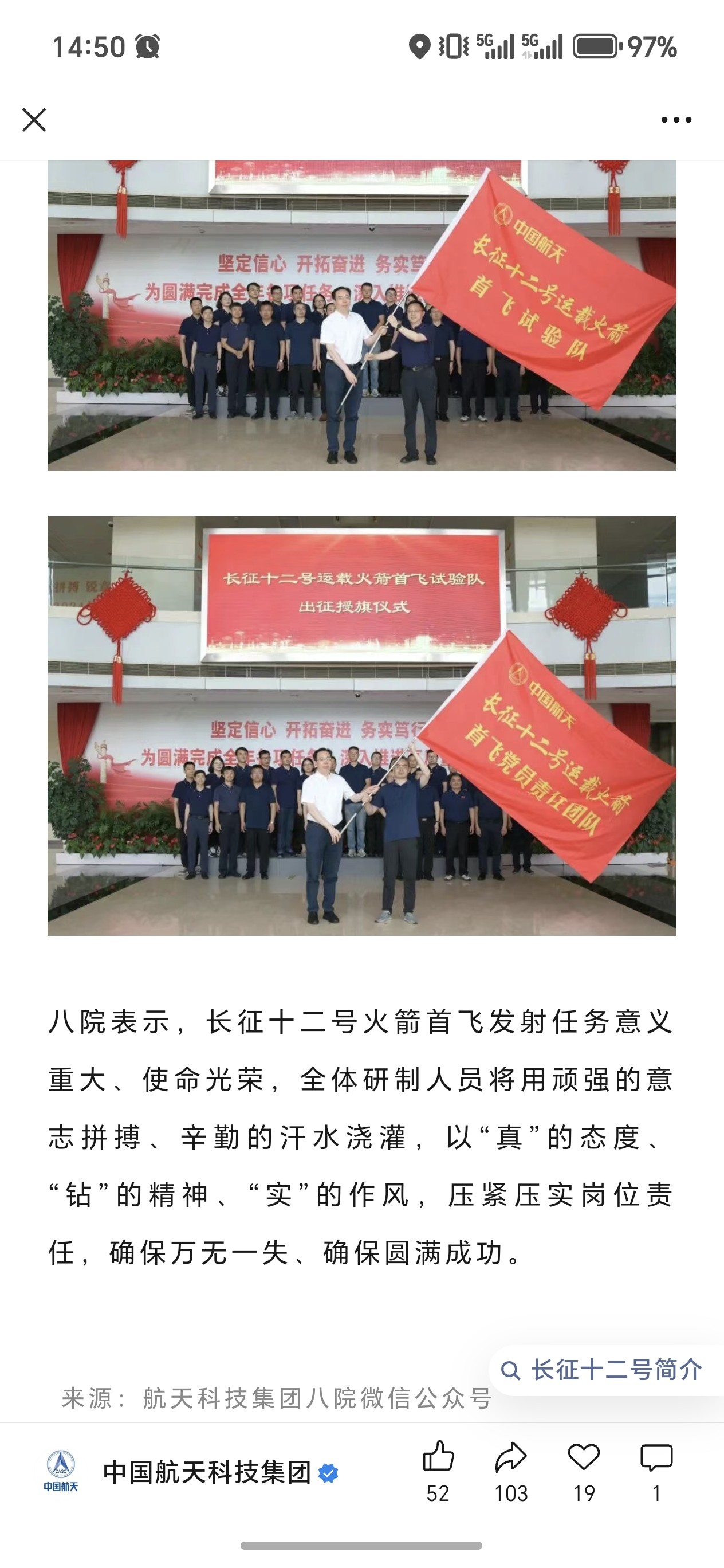 $航天机电(SH600151)$ 来了,发射仪式,让五星红旗飘瞒中国,飘瞒宇宙