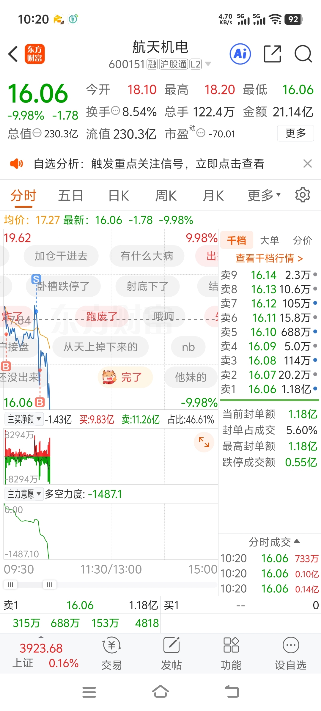 $航天机电(SH600151)$ 妈的。垃圾股。t个鸡把。