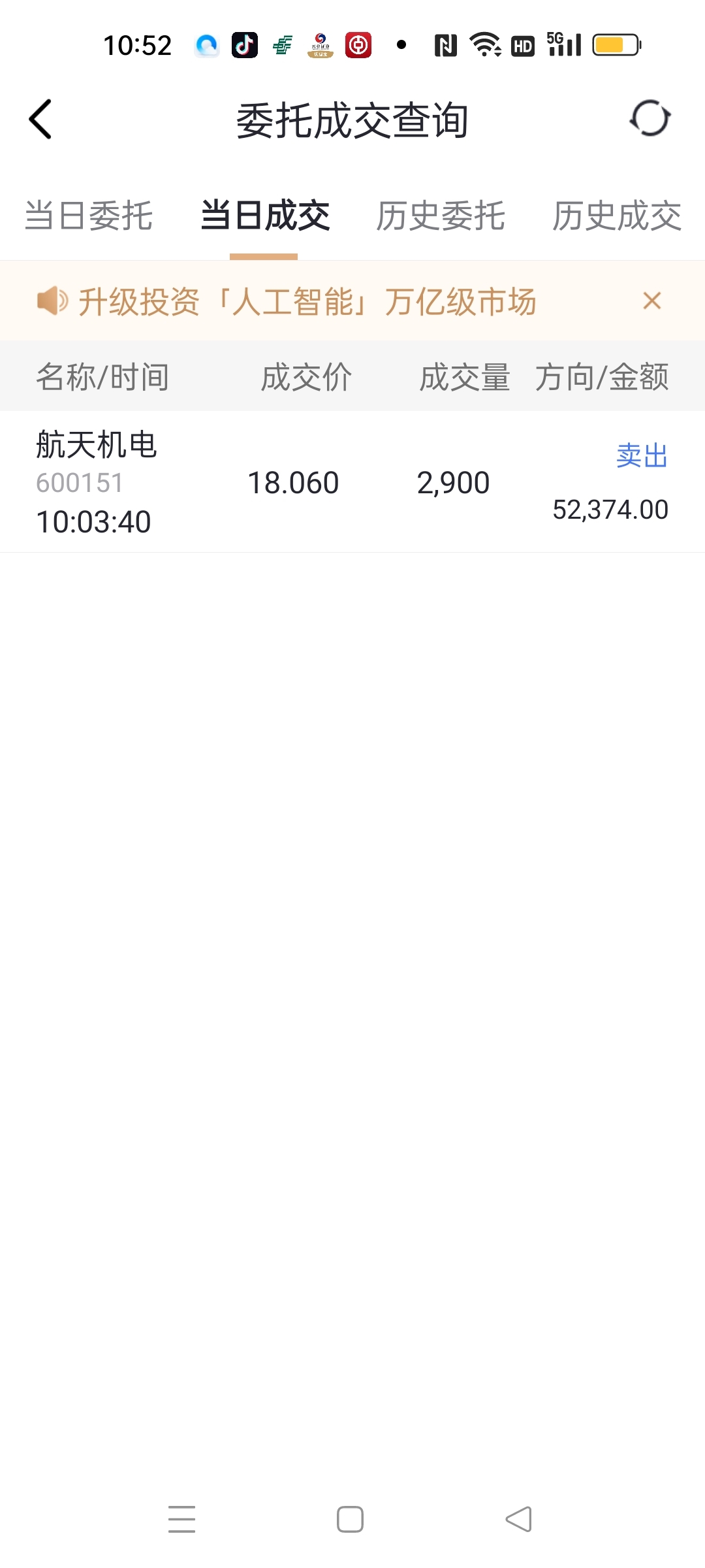 昨天脑壳发热18.02元买进去。今天九点五十挂卖单,10.03时卖出去了。等刚才忙完了一看吓死了。打开账户一看。哈哈哈,天佑善人