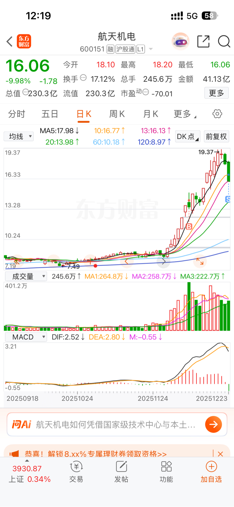 $航天机电(SH600151)$ 没点利润,格局不足,