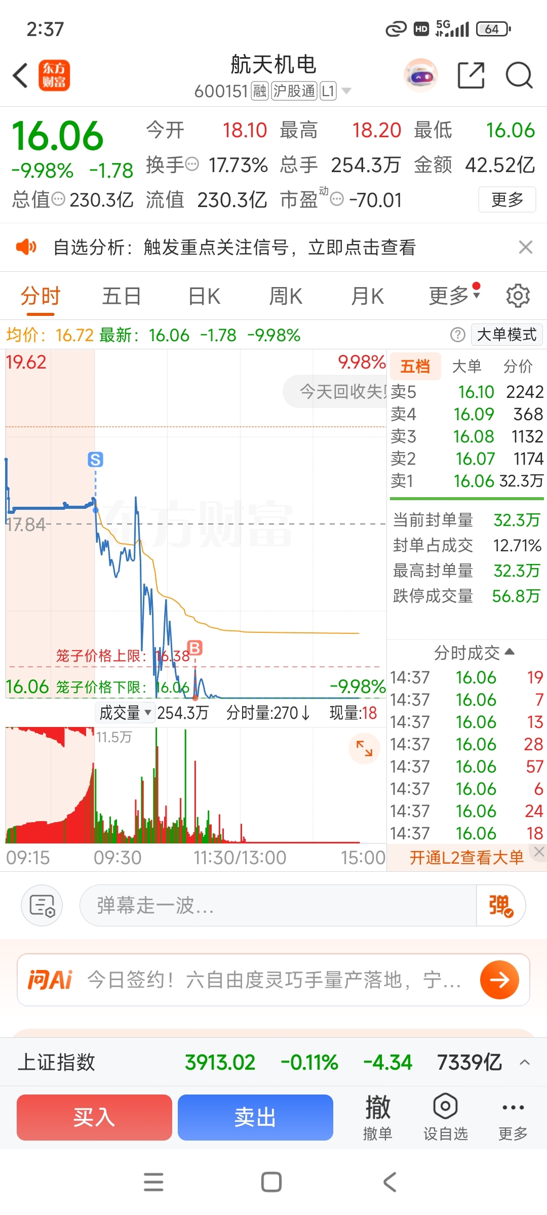$航天机电(SH600151)$ 早盘卖了,看见翘板又买回来了,明天给机会跑吗