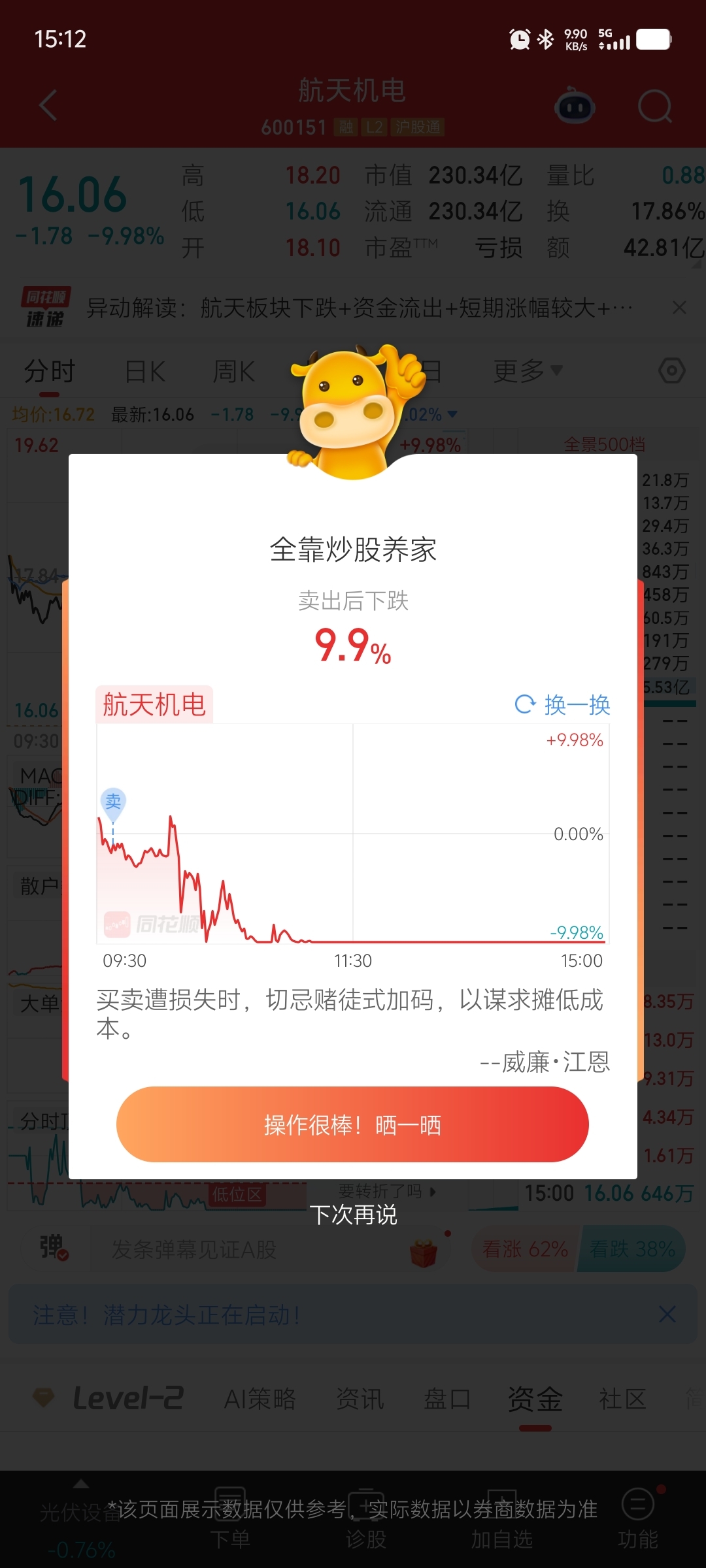 昨天进今天出,今天搞了一个涨停,看你们还格局不