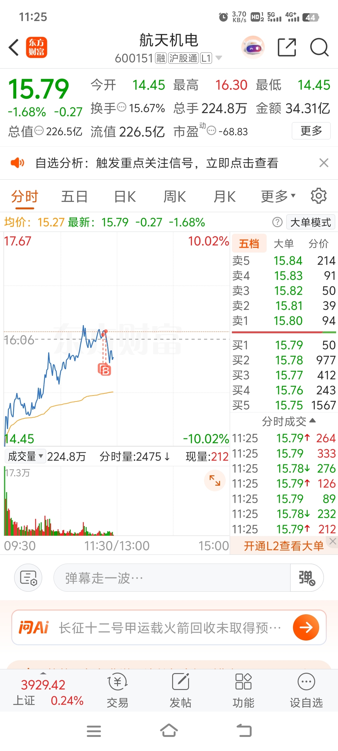 $航天机电(SH600151)$ 主力,你等我买呢?