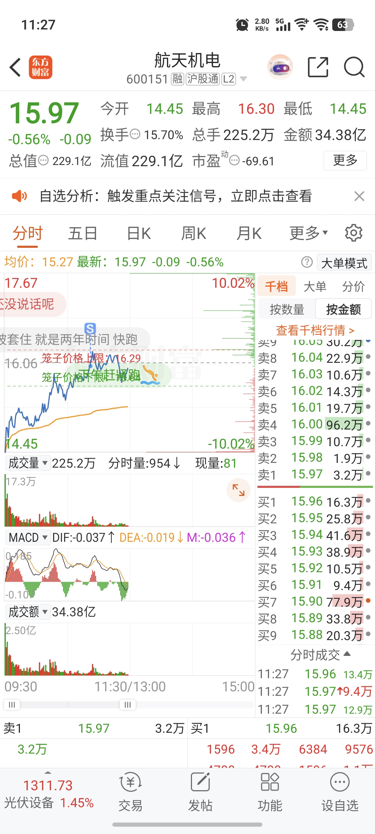 $航天机电(SH600151)$ 亏了2万多,走了!已经很开心了,毕竟是跌停开盘