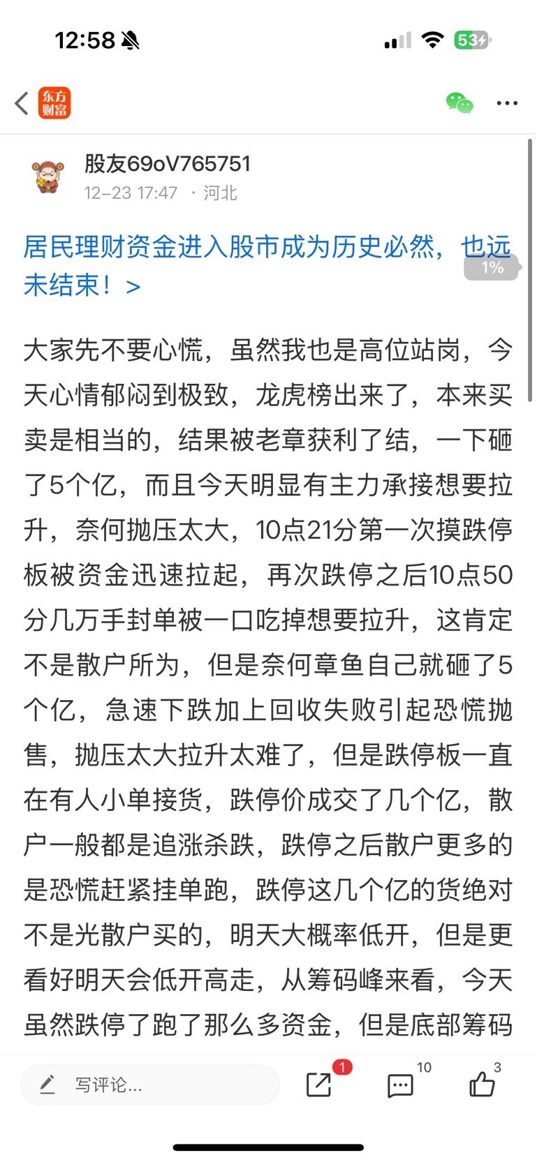 温馨提示: 1.根据《证券法》规定,禁止编造、传播虚假信息或者误导性信息,扰乱证券市场;2.用户在本社区发表的所有资料、言论等仅代表个人观点,与本网站立场无关,不对您构成任何投资建议。用户应基于自己的独立判断,自行决定证券投资并承担相应风险。《东方财富社区管理规定》