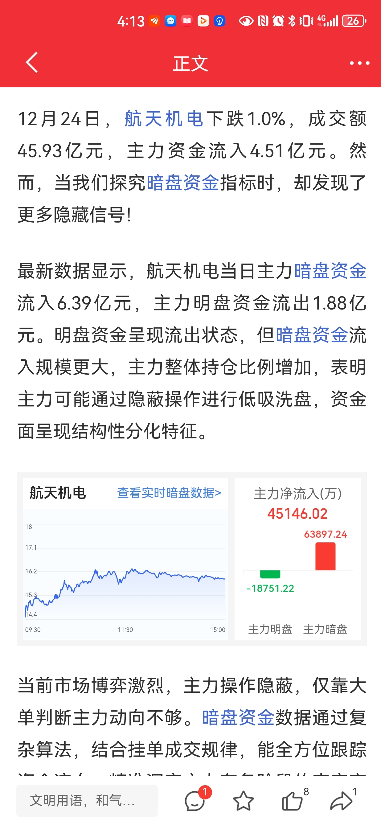 $航天机电(SH600151)$ 暗盘资金流入6个多亿,大家怎么看?