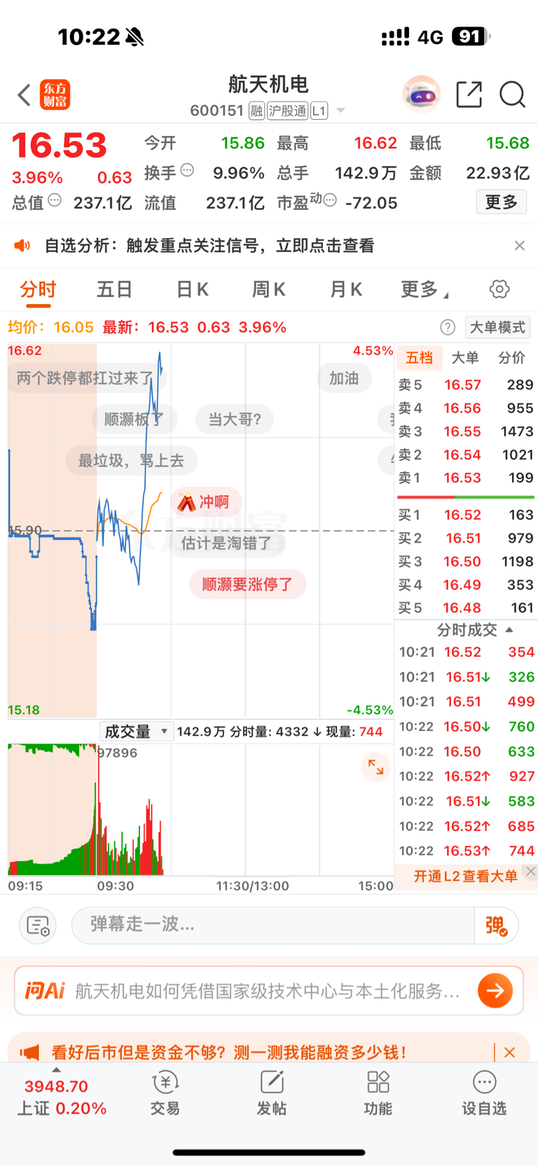 $航天机电(SH600151)$ 勇敢牛牛不怕困难,冲冲冲