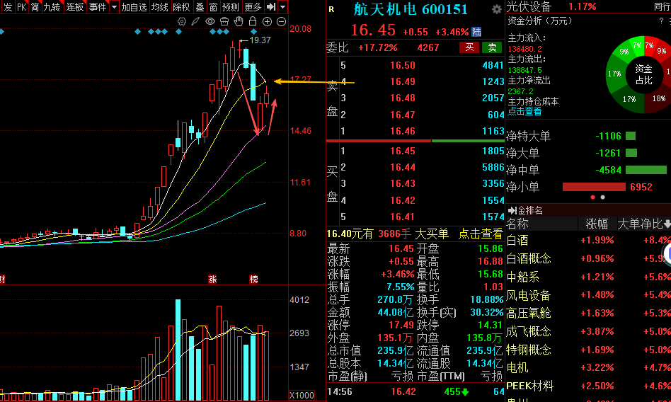 今天竞价依旧偏弱,但实际开盘位置还算不错,略微低开后在早盘震荡一下便开始拉升,盘中一度冲高到6个点左右。虽然随后有所回落,但最终仍收出不错的涨幅,只是冲高过程中也显示出一定的抛压。整体来看,弱转强的形态已经走出来了,连续两根阳线也让技术面得到了明显修复。上方短期均线附近(大概17元一带)仍是比较明显的压力位,今天冲高时也被压制。不过在经过连续震荡整理后,抛压已经得到有效释放,市场情绪也出现了明显回暖。不出意外的话,明天大概率还能继续向上走。