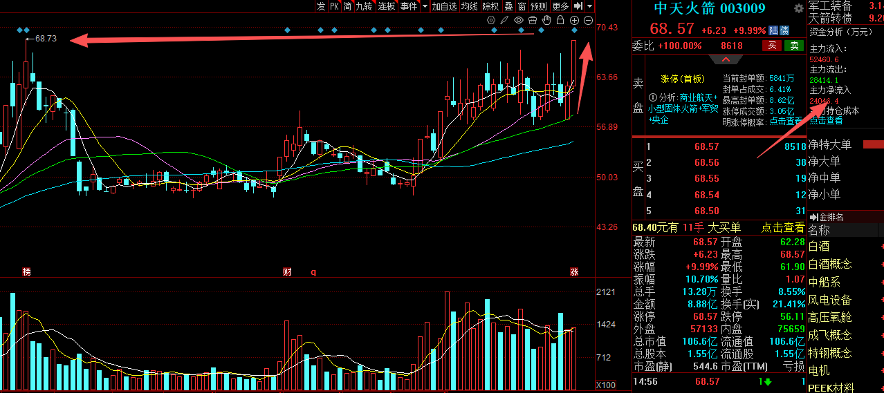 $中天火箭(SZ003009)$