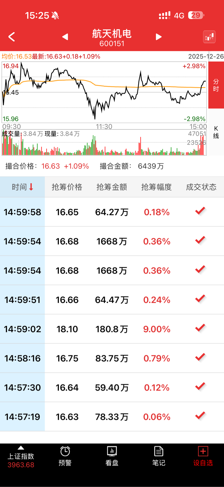 $航天机电(SH600151)$ 千手哥涨停抢筹
