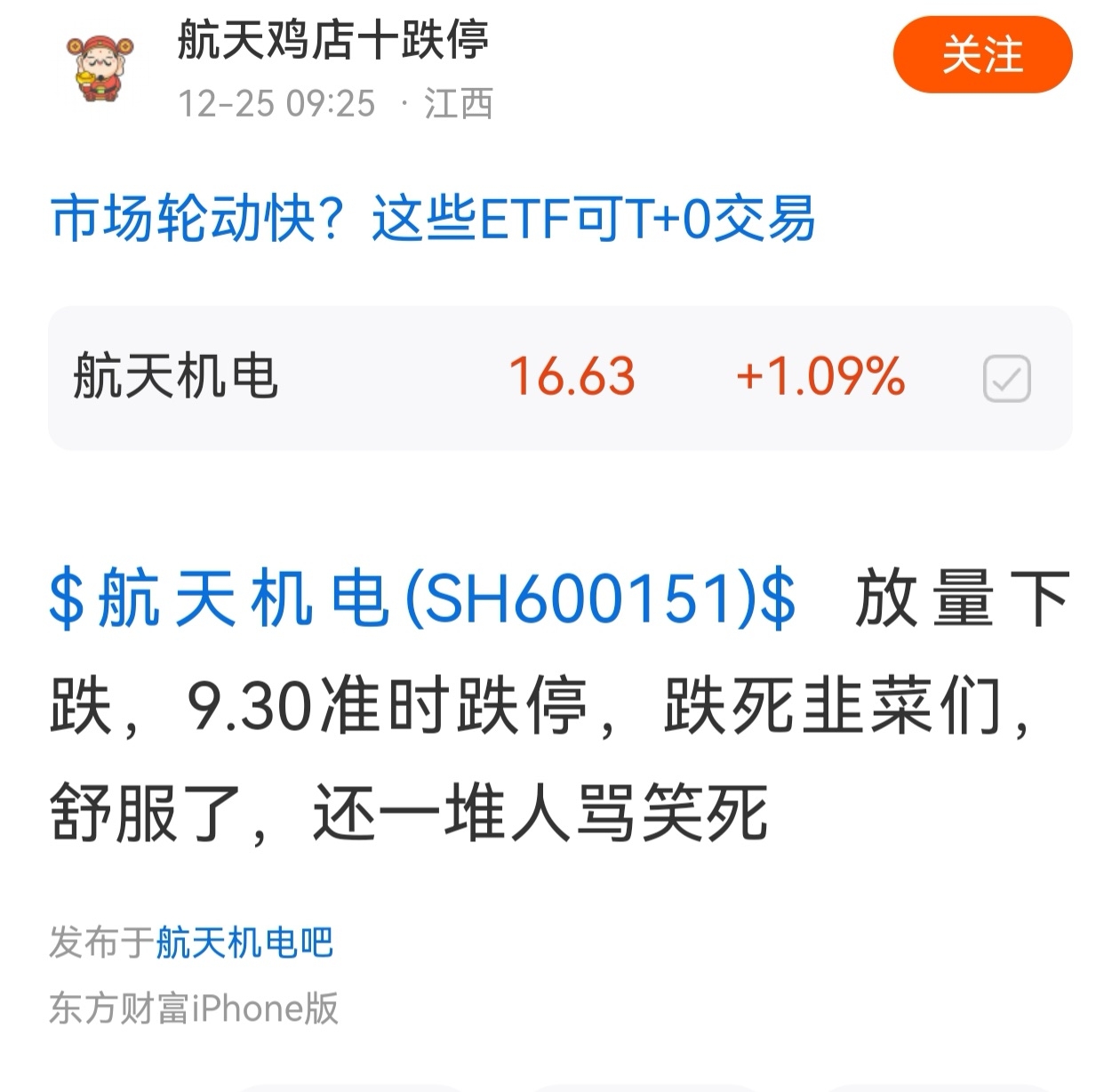 $航天机电(SH600151)$ 玛德,这个人就是傻13,25日就狂吠跌停,事实呢很打脸