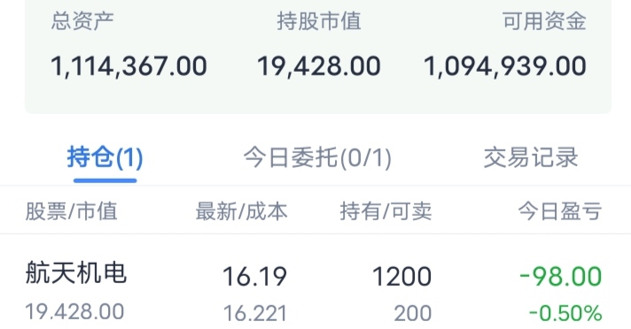 $航天机电(SH600151)$ ,跌停吧,我买了1200。