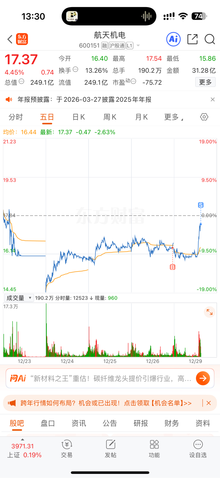 $航天机电(SH600151)$ 跑了可以涨停了