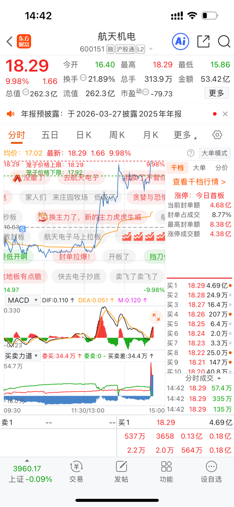 $航天机电(SH600151)$ 割了你就涨,真狠呀!