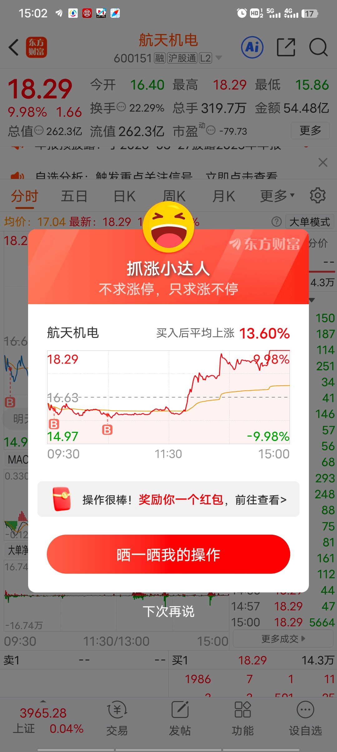 $航天机电(SH600151)$ 今天买进来了爽歪歪