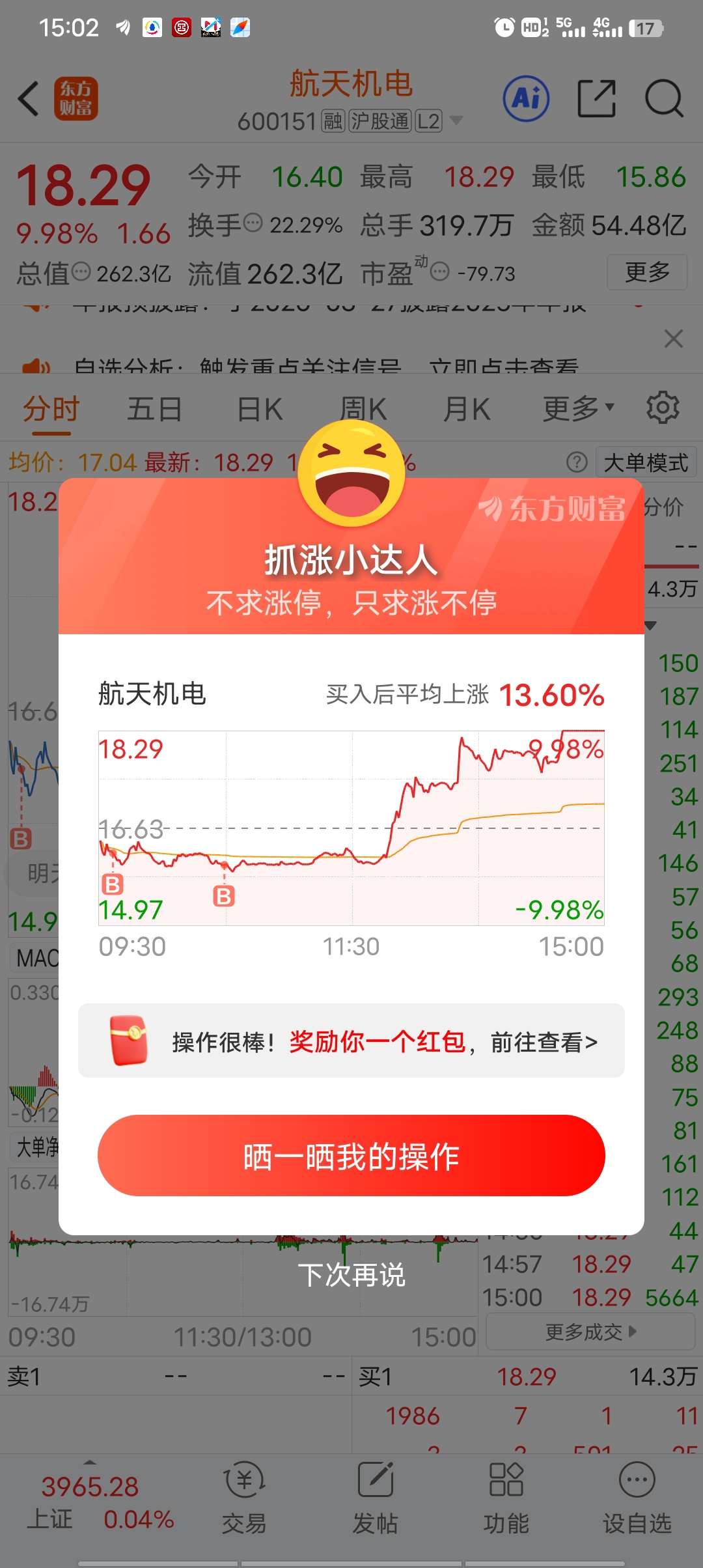 $航天机电(SH600151)$ 水下买进,明天继续吃肉