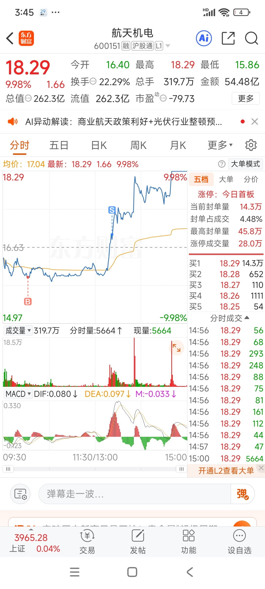 $航天机电(SH600151)$ 进一手,出了一半算盘打错了,想等回调再加上,失算了。