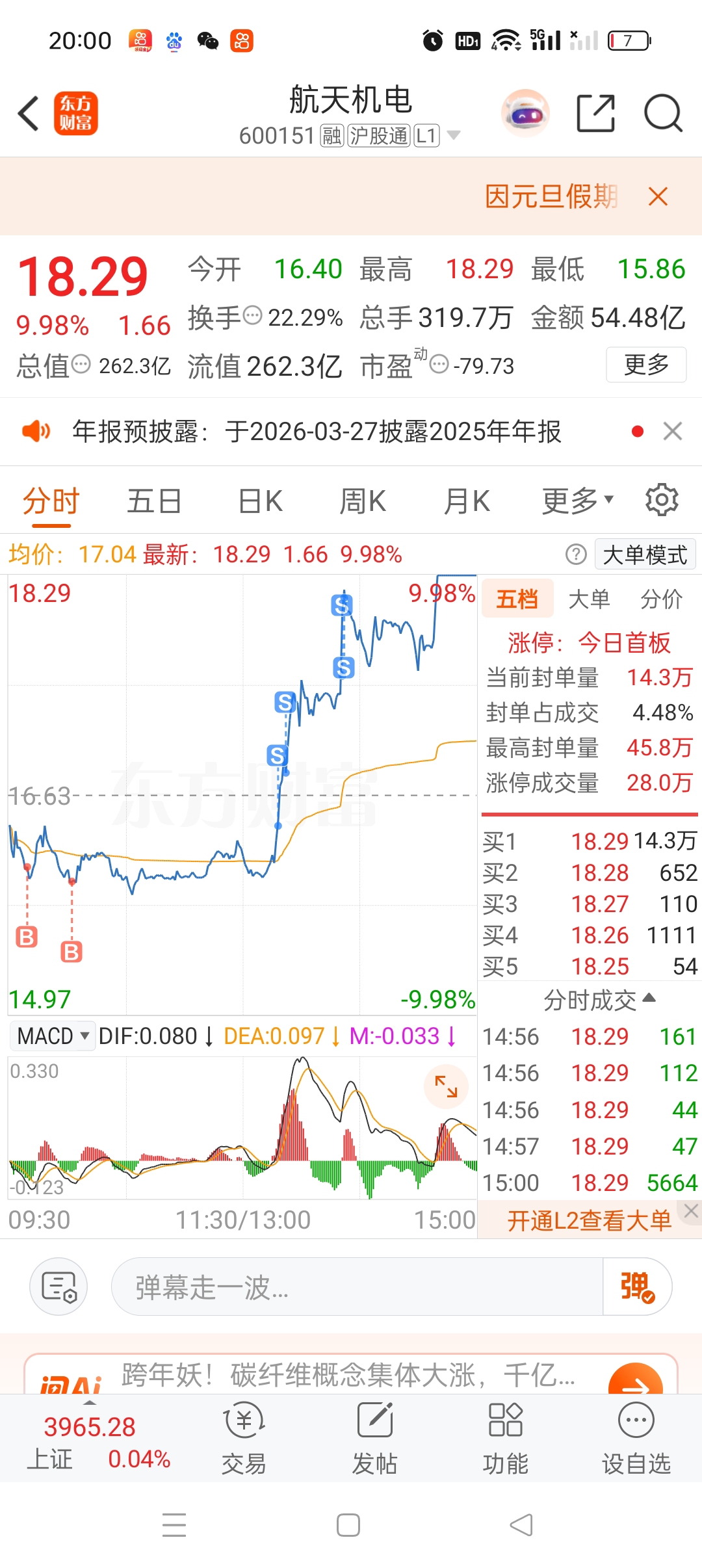 $航天机电(SH600151)$ 如果不要卖飞,我今天都能回本