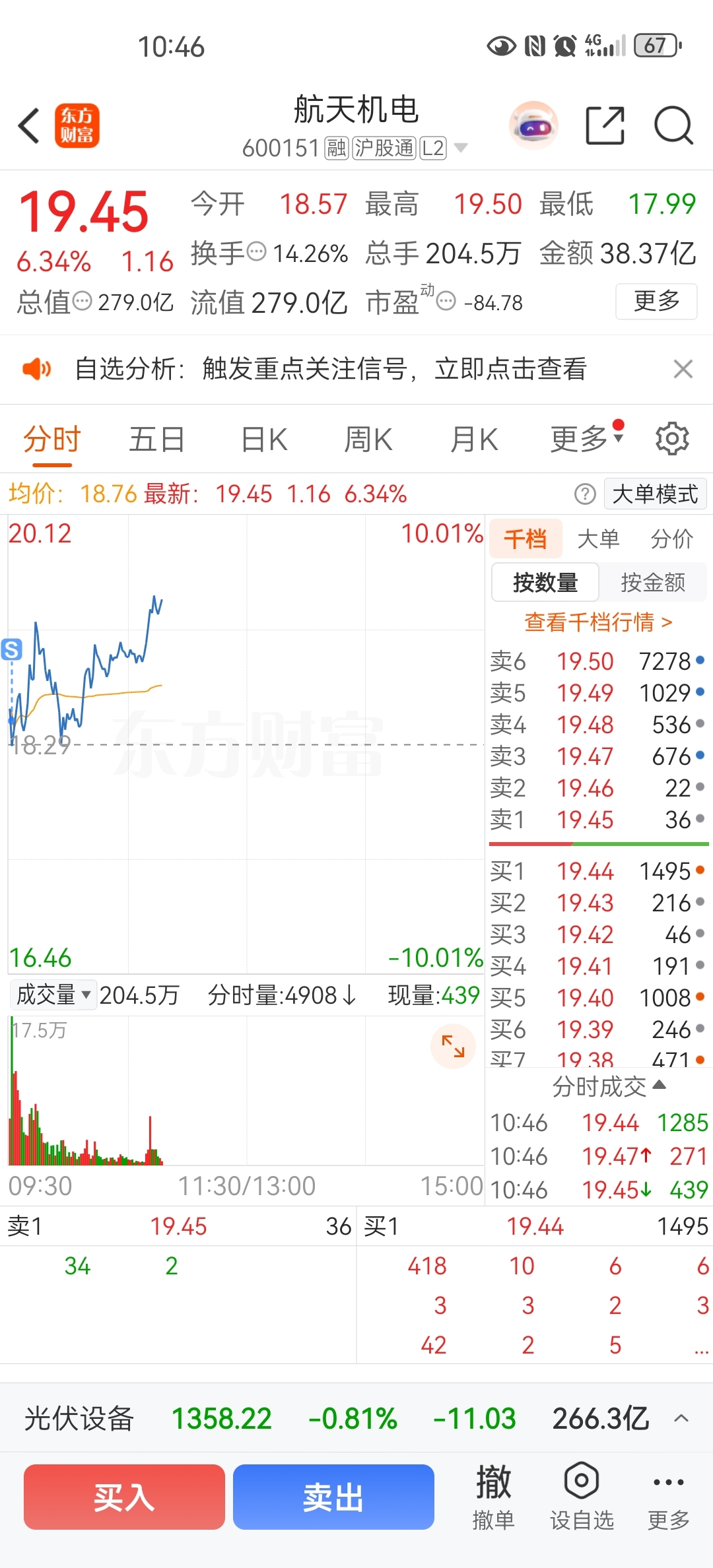 $航天机电(SH600151)$ 开盘就卖了,快气死我了
