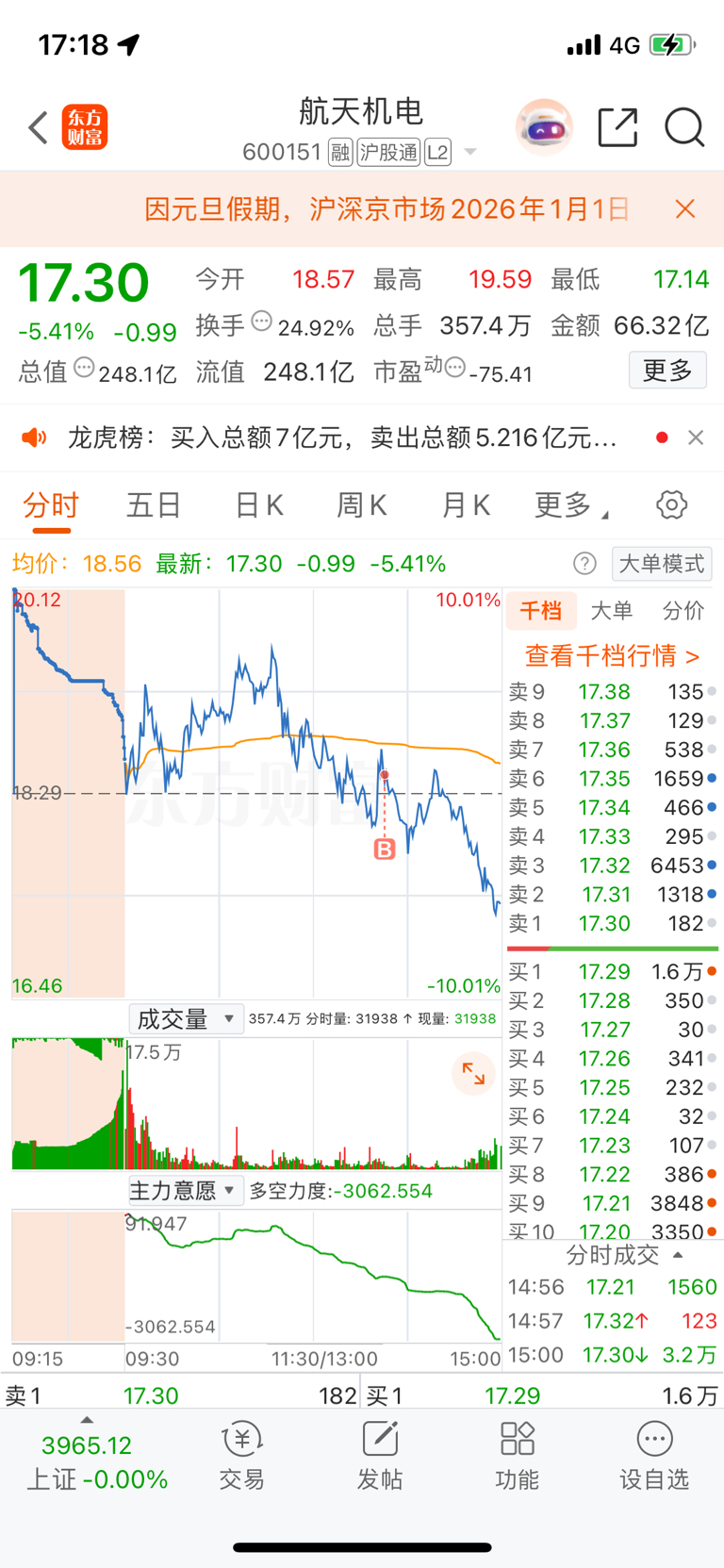 $航天机电(SH600151)$ 手贱,卖了航天电子进了这货,一下子不见6个多点