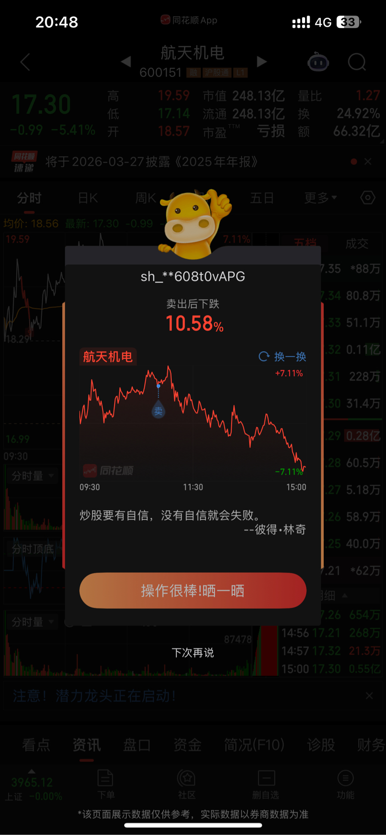 $航天机电(SH600151)$ 说幸运吧跑了,不幸吧,没最高点走