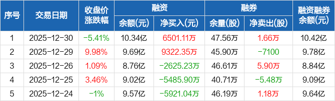 航天机电:融资净买入6501.11万元,融资余额10.34亿元(12-30)