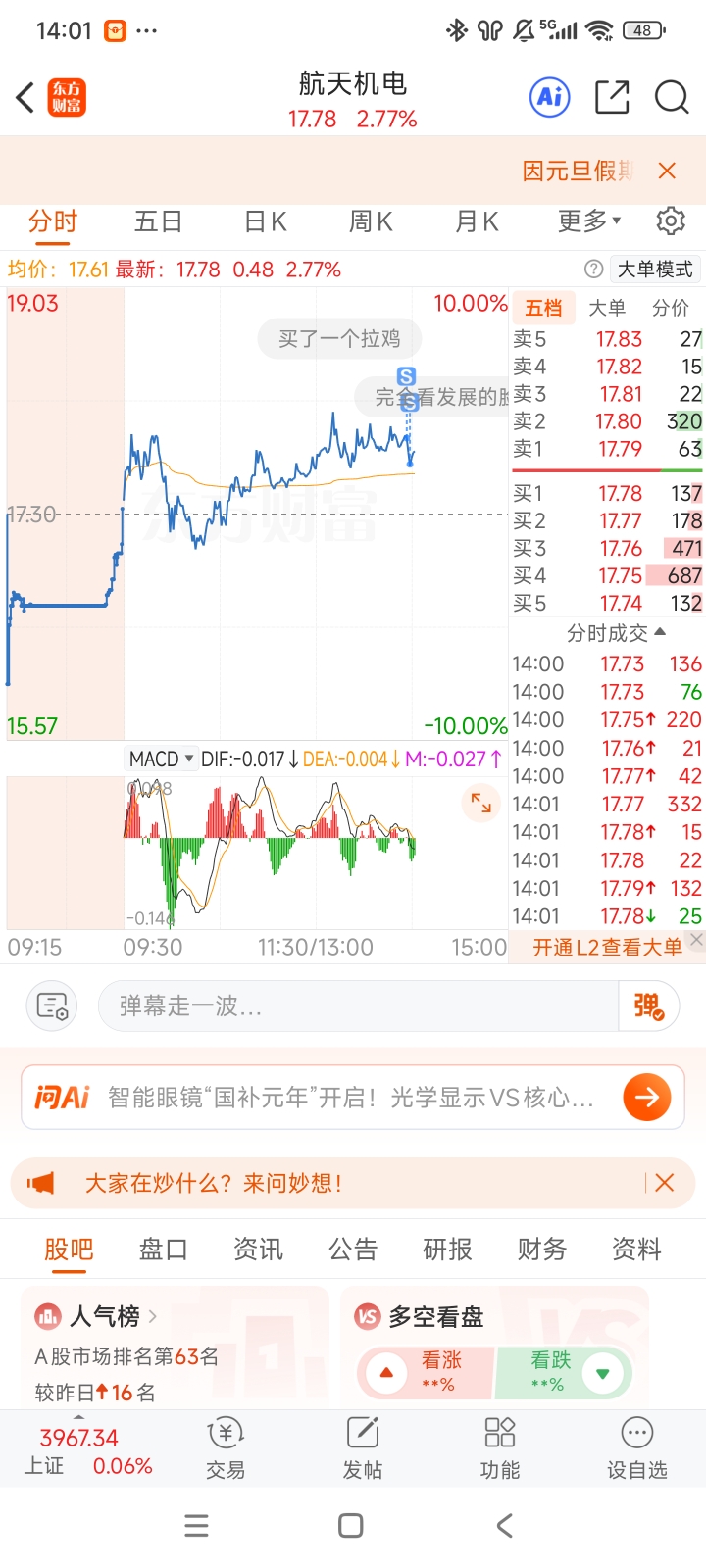 温馨提示: 1.根据《证券法》规定,禁止编造、传播虚假信息或者误导性信息,扰乱证券市场;2.用户在本社区发表的所有资料、言论等仅代表个人观点,与本网站立场无关,不对您构成任何投资建议。用户应基于自己的独立判断,自行决定证券投资并承担相应风险。《东方财富社区管理规定》