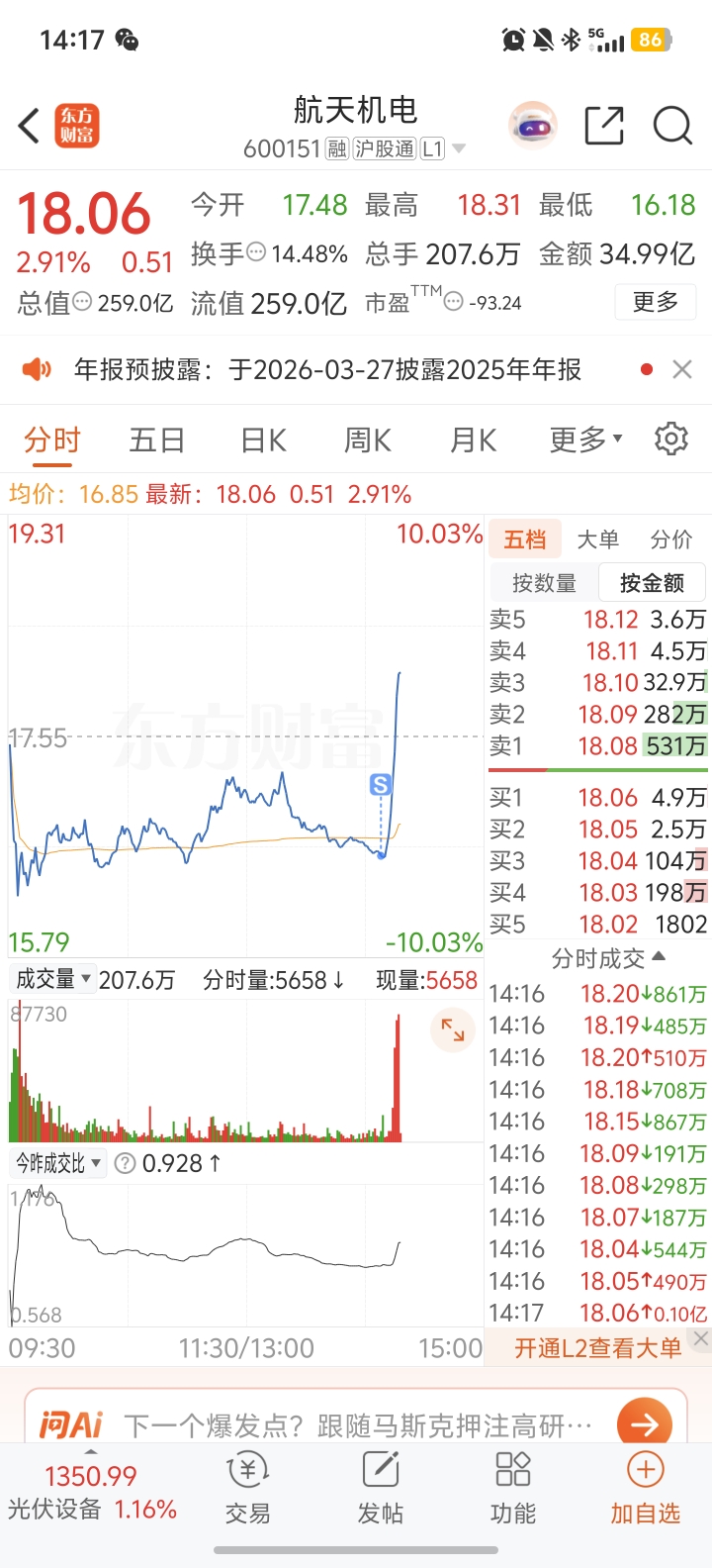 $航天机电(SH600151)$ 就蹲我呢