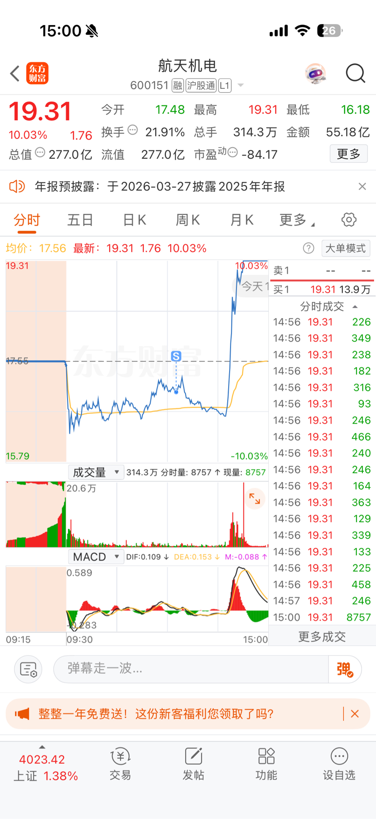 $航天机电(SH600151)$ 牛逼,还觉得自己卖对了,终于操作对了一次,牛逼