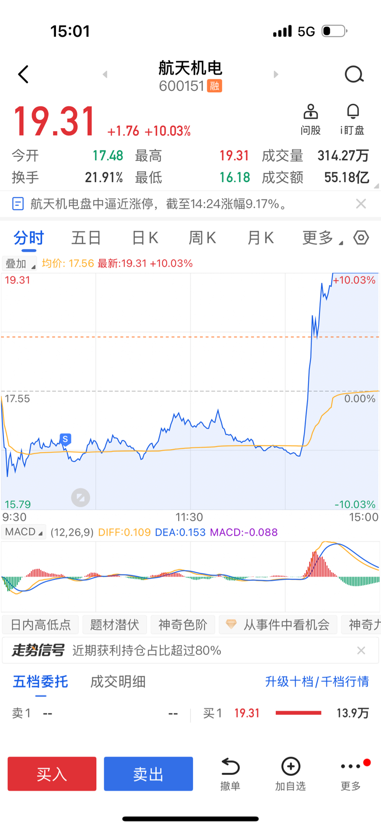 $航天机电(SH600151)$ 第一个交易日,真棒