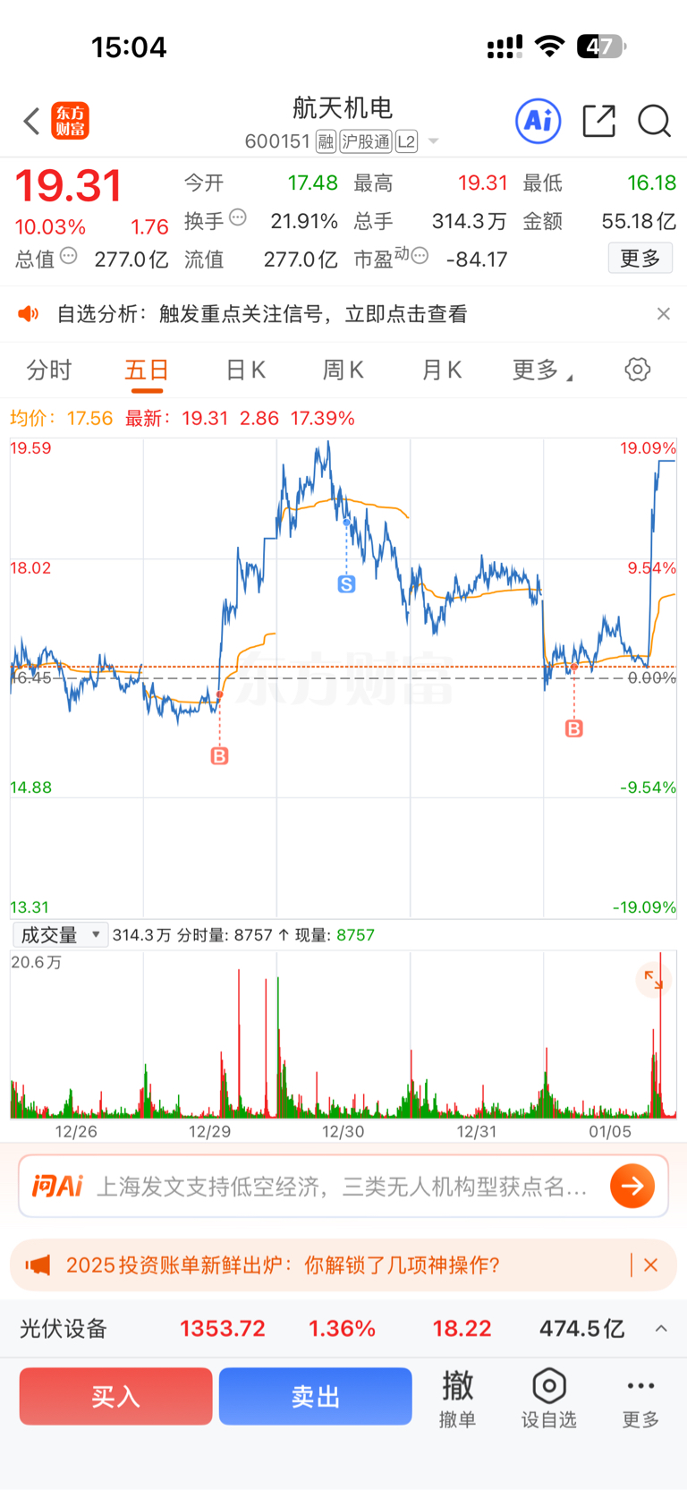 $航天机电(SH600151)$ 掘地求生,明天不及预期就跑
