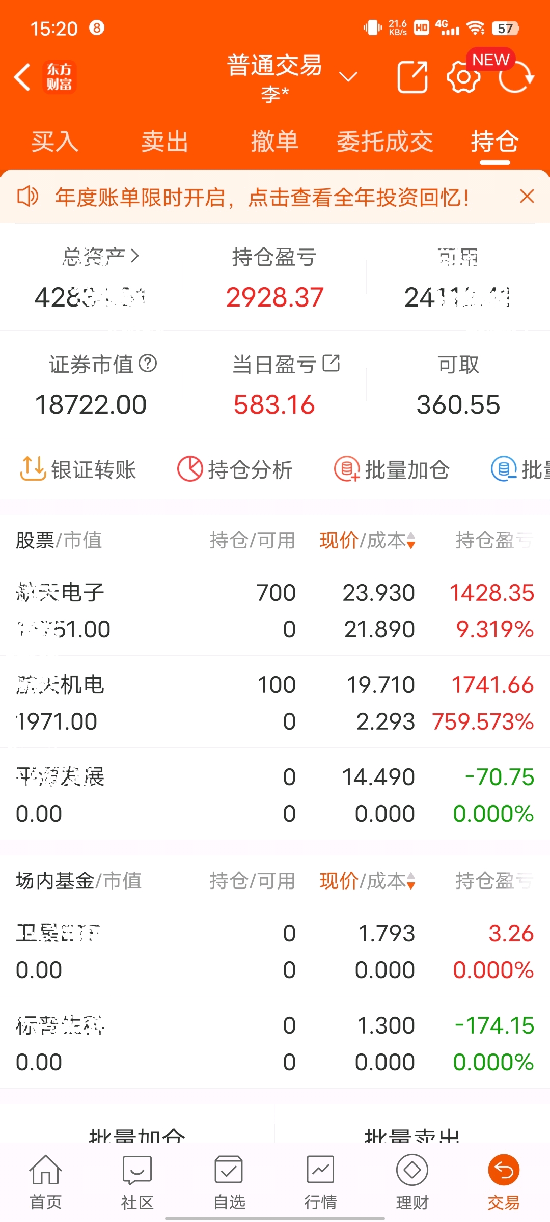 $航天机电(SH600151)$ 上周涨停前进的,17块多的本,今天水下给我洗出去了,赔得时候死拿,有一点利润就容易被洗出去,果然认知以外的利润是拿不住的。不过还好早上卖出后进了隔壁电子,今天有失有得,落袋为安