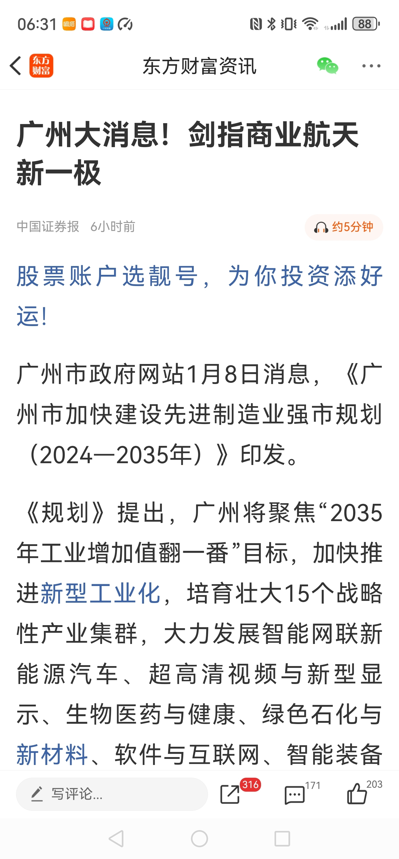 $航天机电(SH600151)$ 广州要大力发展商业航天