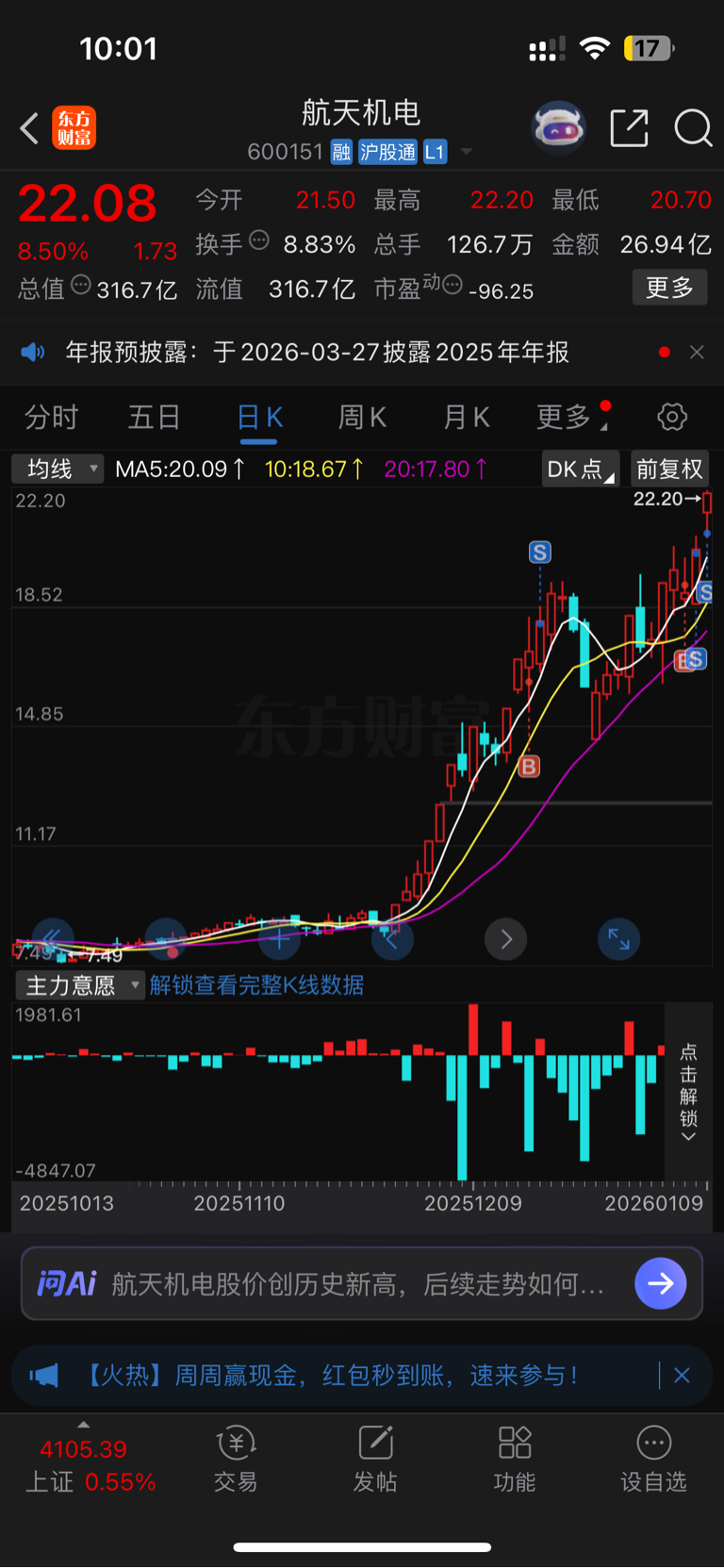 $航天机电(SH600151)$ 真的出掉就涨,留下的发财