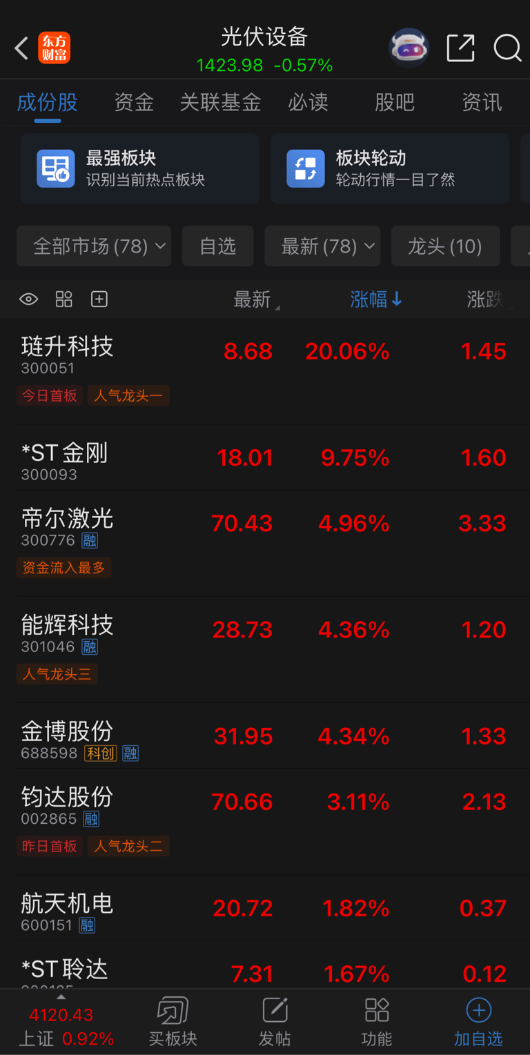 $航天机电(SH600151)$ 还是光伏设备一栏的,怪不得,不跟航天,但还是坚定看好