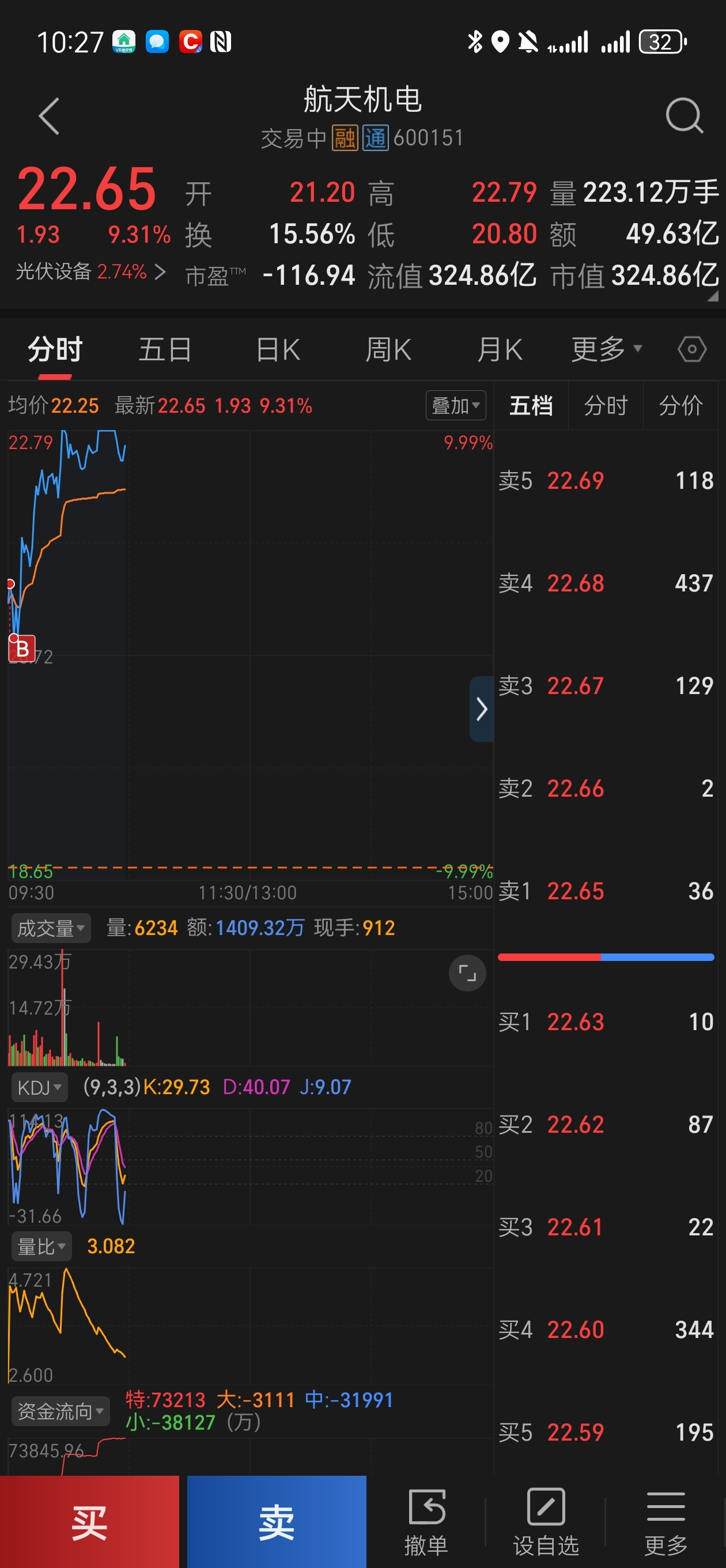 $航天机电(SH600151)$ 刚刻意留个口子,没封,是最后再收些散户筹码