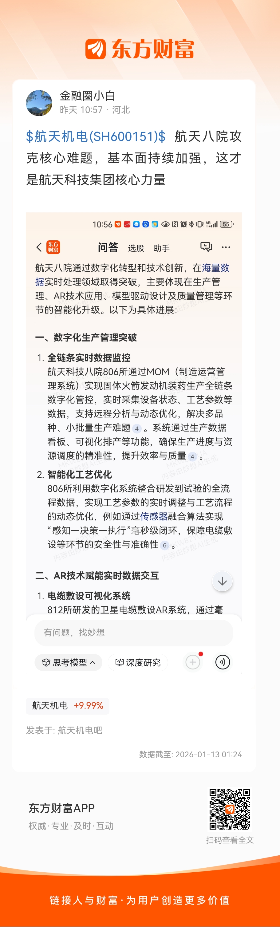 $航天机电(SH600151)$  航天八院攻克核心难题,基本面持续加强,这才是航天科技集团核心力量