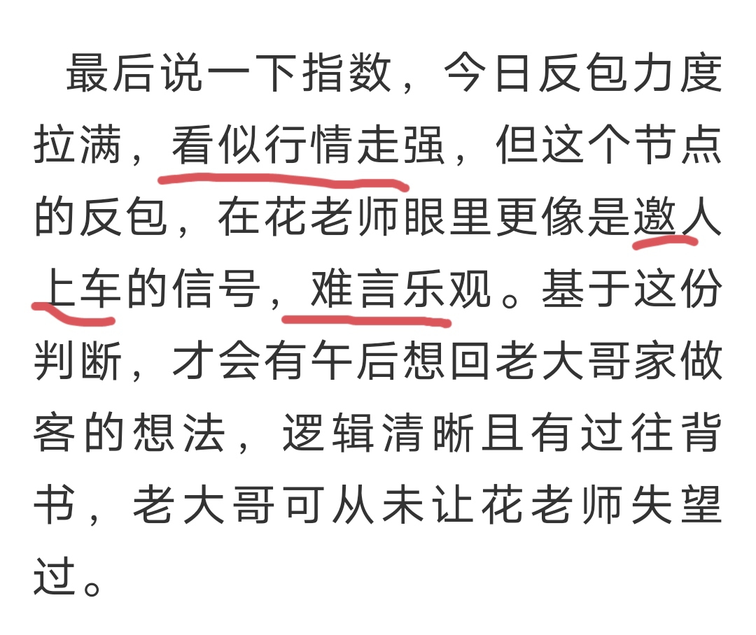 正常情况下,下午开盘指数放量那一刻花老师是会进场,无奈当时在干饭错失机会,还好后续肉给的不多,没啥好可惜的,咱不拍大腿哟!