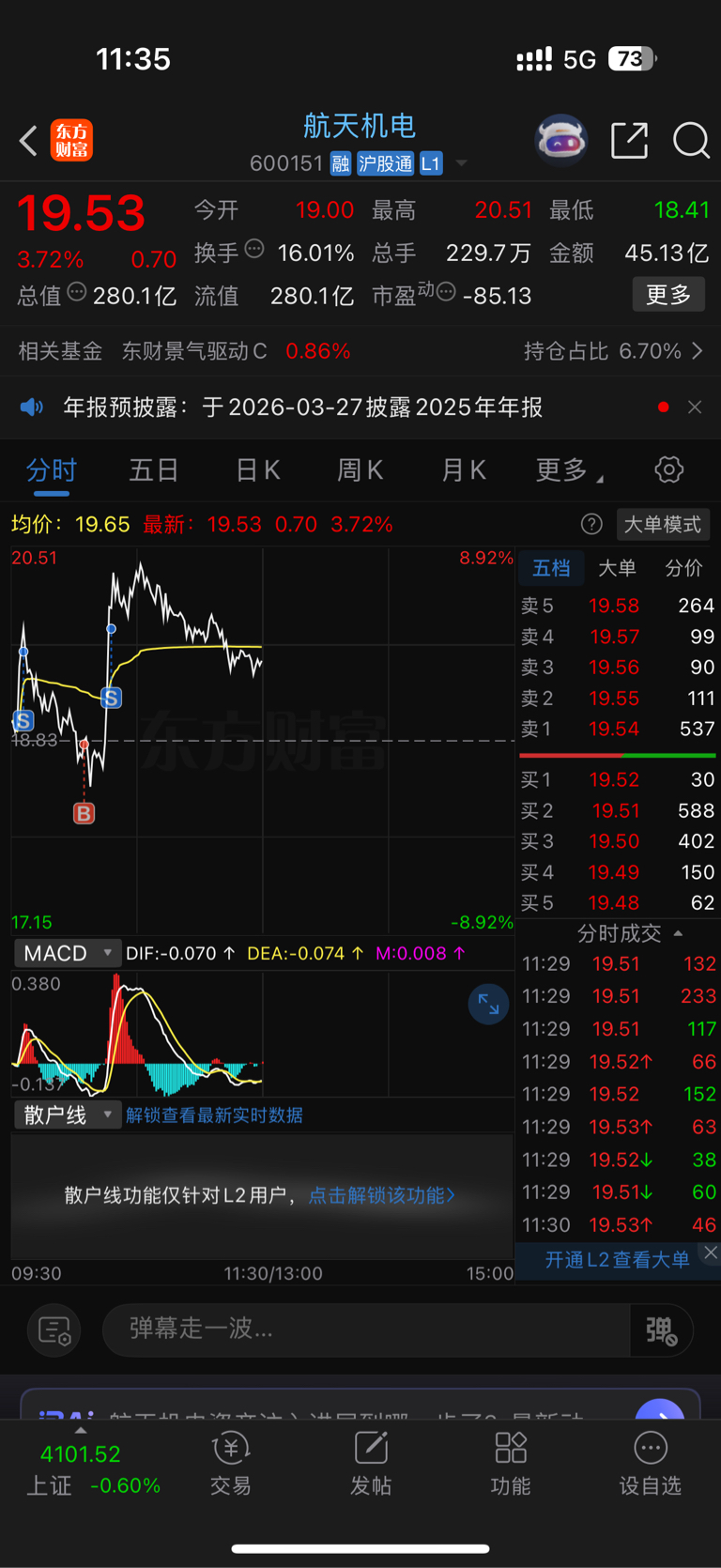 $航天机电(SH600151)$ 也算解套一个航天