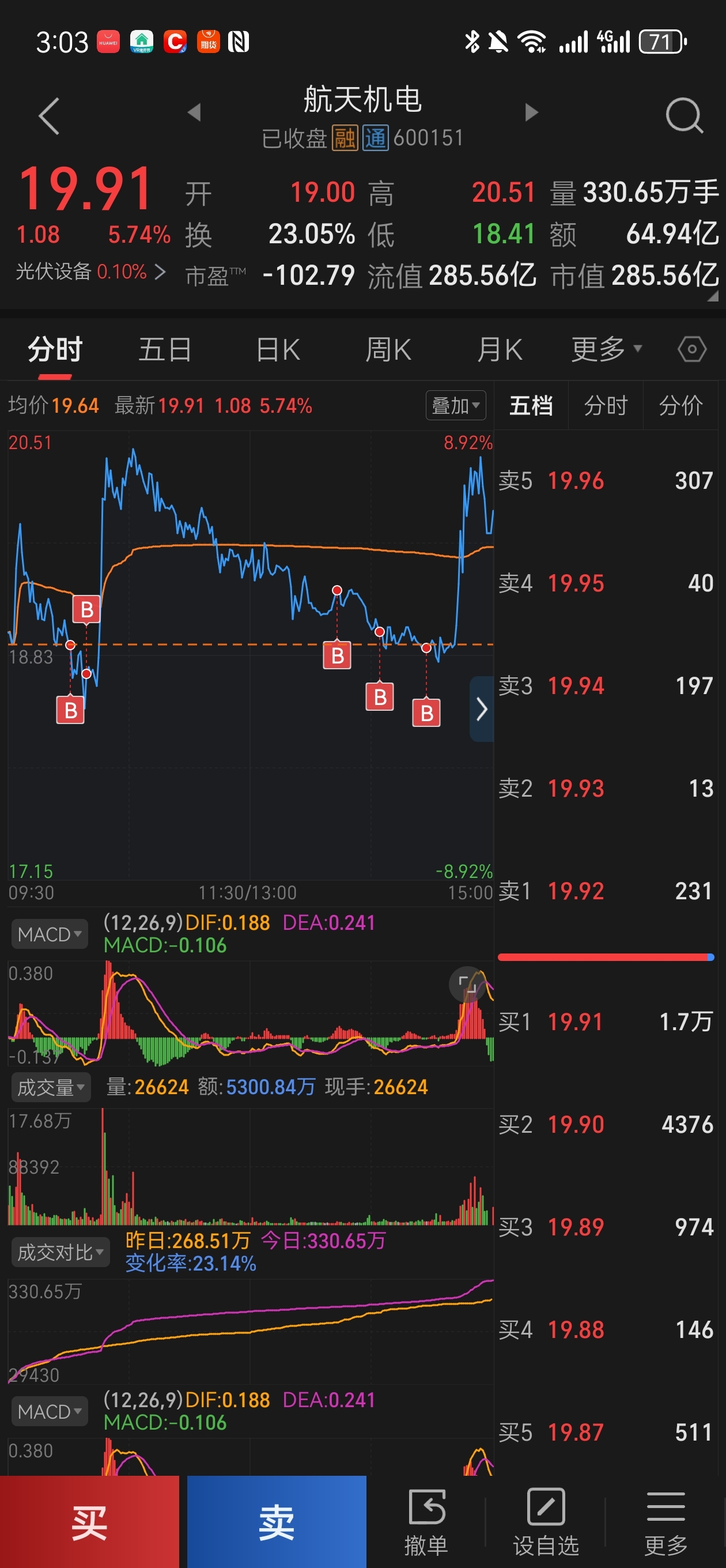 我两点二十发了一条,打完最后一梭子,撤掉了,因为发现还能买最后300股,买入图要出来,就撤了,准备买入,彻底结束,所有资金彻底打光了,坚持到最后一刻,没想到,中国人民解放军来了!向你致敬最后2.7万手加价到19.91买入的英雄,今天真是风云际会,荡气回肠!
