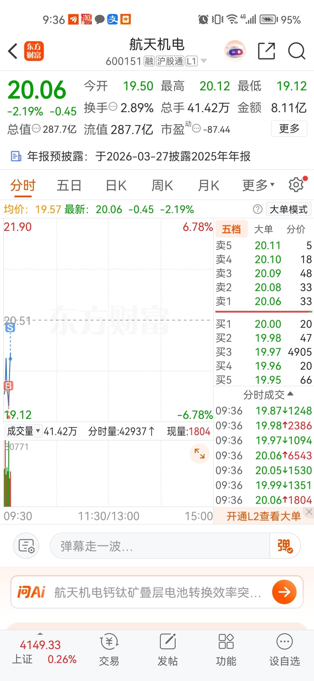 $航天机电(SH600151)$ 呼家楼来的前一天,我的操作。